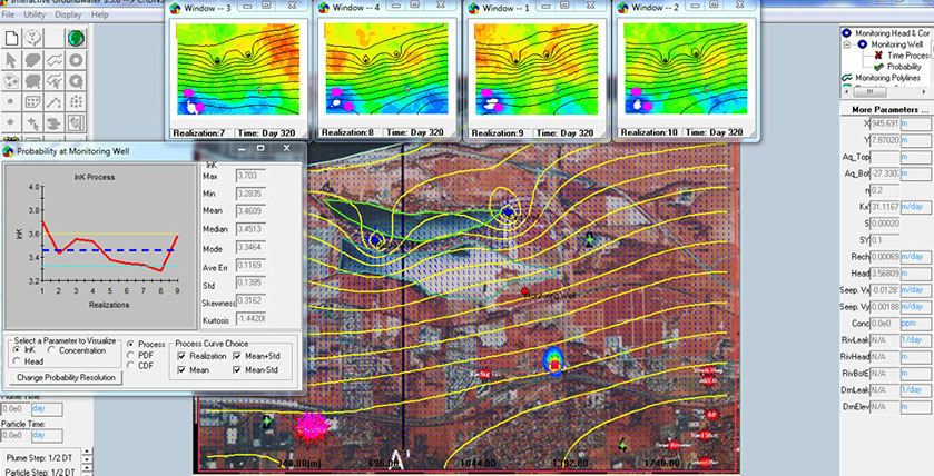 2D flow simulation, plume travel time estimation